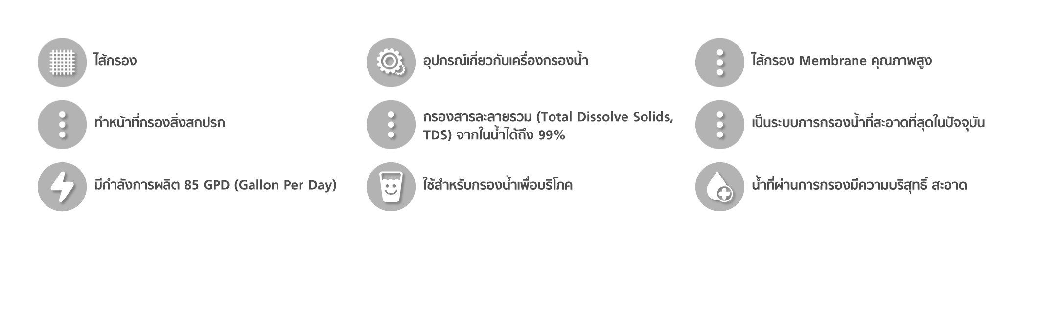 • มีกำลังการผลิต 85 GPD (Gallon Per Day)