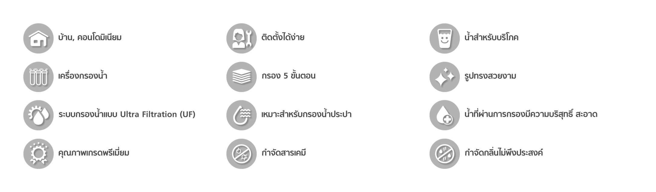EXMA เครื่องกรองน้ำ 5 ขั้นตอน Ultra Filter (UF) ที่จะทำให้คุณมั่นใจได้ถึงความใสสะอาด กำจัดกลิ่น สี สารเคมี ได้ดี เหมาะสำหรับการผลิตน้ำดื่ม ในครัวเรือน ทั้งบ้านหรือ Condominium รูปทรงสวยงาม เหมาะสำหรับวางทุกจุดในบ้าน ติดตั้งได้ง่าย